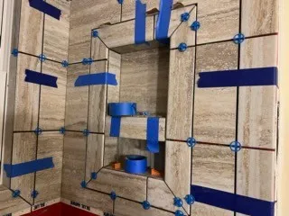 Shaw Floors Calacatta Oro polished white marble-look tile in a luxurious bathroom